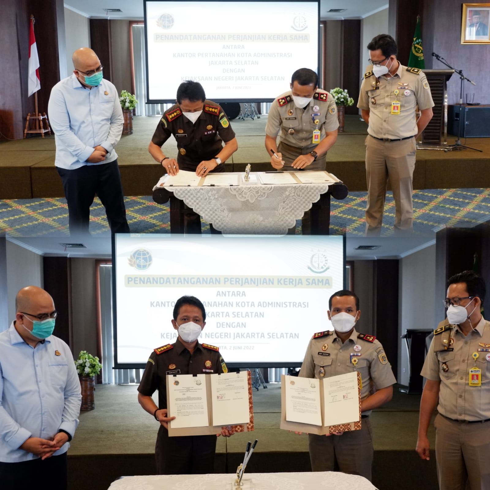 “Pada hari Kamis, tanggal 02 Juni 2022 pukul 10.30 WIB bertempat di Aula Kantor Kejaksaan Negeri Jakarta Selatan telah dilaksanakan penandatanganan perpanjangan kerjasama penanganan masalah hukum bidang Perdata Dan Tata Usaha Negara antara Kantor Pertanahan kota Administrasi Jakarta Selatan,”kata Kepala Kejaksaan Negeri Jakarta Selatan dalam keterangan tertulisnya yang diterima, Kamis (02/06).
