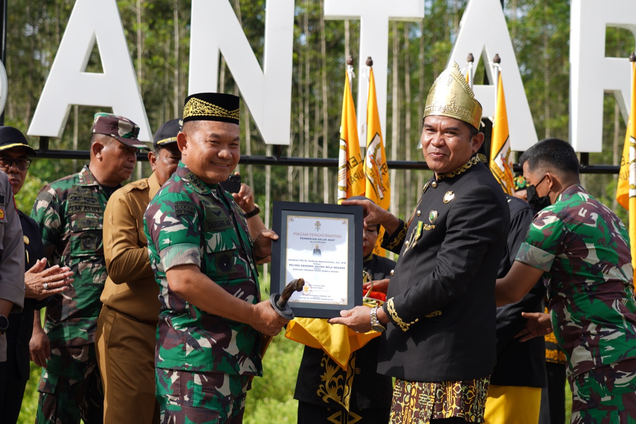 Terlihat dalam prosesi penyambutan tersebut, Kasad dianugerahi gelar adat “Kakah Demong Agung Bela Negara” yang memiliki arti Pemimpin Yang Agung Pembela Negara. Gelar Adat ini merupakan gelar ke – 10 yang diterima Kasad selama menjabat dan mengunjungi berbagai daerah di Indonesia (REN)